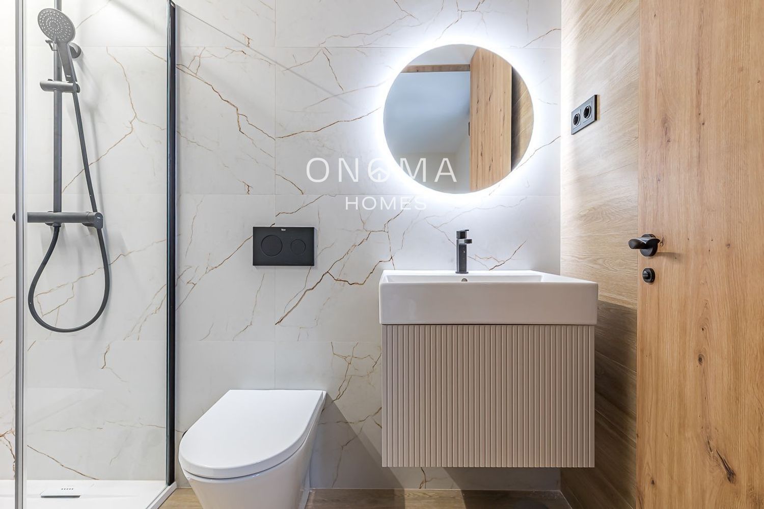 La vivienda dispone de 3 dormitorios, cada uno con baño en suite, además de un aseo de cortesía. La zona de estar es amplia y luminosa, con un diseño moderno de concepto abierto que integra salón, comedor y cocina americana. La cocina, equipada con electrodomésticos de alta gama, cuenta con una elegante isla central con espacio para sentarse, ideal para reuniones y momentos de disfrute.